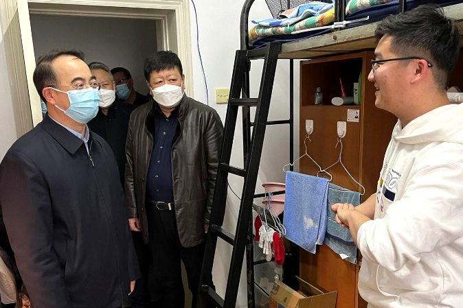 陈延良指出,要学习贯彻习近平总书记在中共中央政治局常务委员会会议上的重要讲话精神,深入落实全国新冠疫情防控电视电话会议精神,按照3月18日省委常委会会议、全省疫情防控电视电话会议工作要求,时刻紧绷疫情防控这根弦,以“硬核”的措施、有力的行动,推动形成校园疫情防控工作“闭环”。他强调,当前是疫情防控的关键时期,必须坚持科学防控,强化闭环管控,精准把握师生健康状况,要加强对学生的思想引导,关注学生的心理健康,全力做好校园准封闭式管理期间教育教学工作衔接和学生服务保障的工作。(摄影:苏诗乔 李昌刚 张碧雪 李冰冰 李银涛)