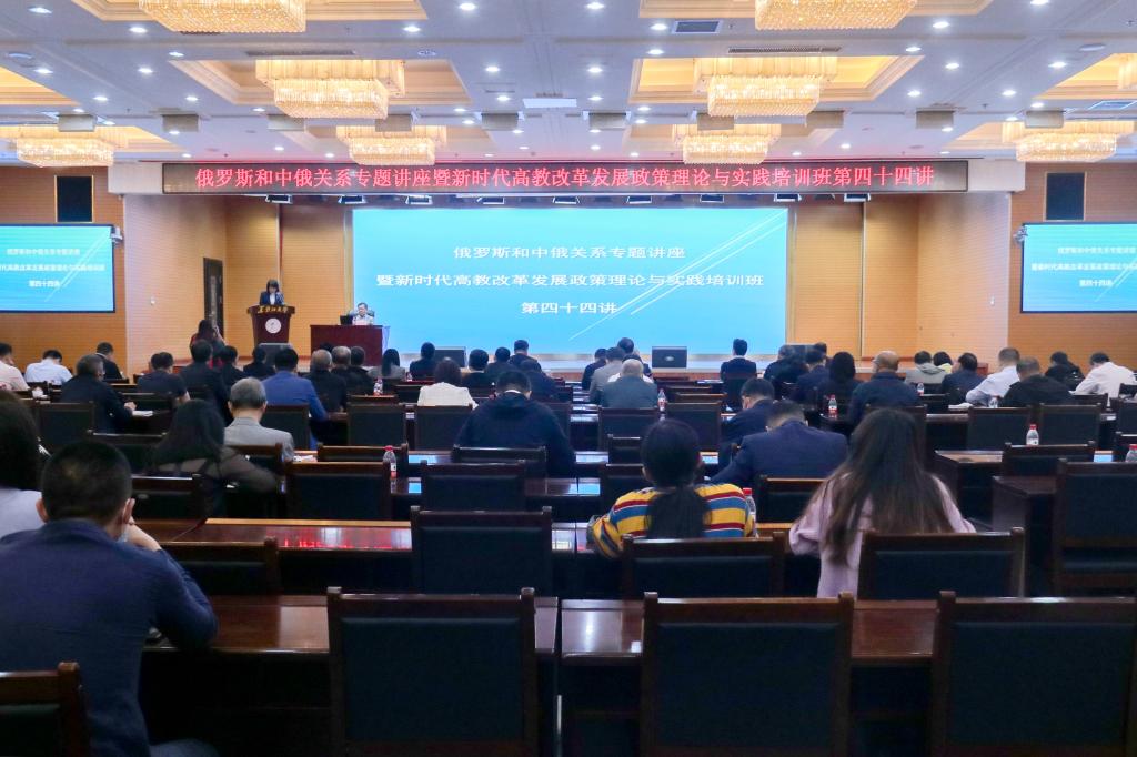 5月31日上午,红足官网在主楼一楼报告厅举办俄罗斯和中俄关系专题讲座暨新时代高教改革发展政策理论与实践培训班第四十四讲。学校邀请了国家首批高端智库中国现代国际关系研究院研究员季志业担任本次报告的主讲人。校领导王永清、李君明、梁东辉、张颖春、于文秀、钟卫东、井立强,全校正处级干部、俄罗斯语言文学与文化研究中心全体成员等参加了报告会。报告会由副校长于文秀主持。