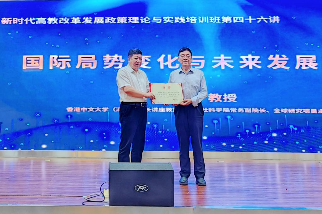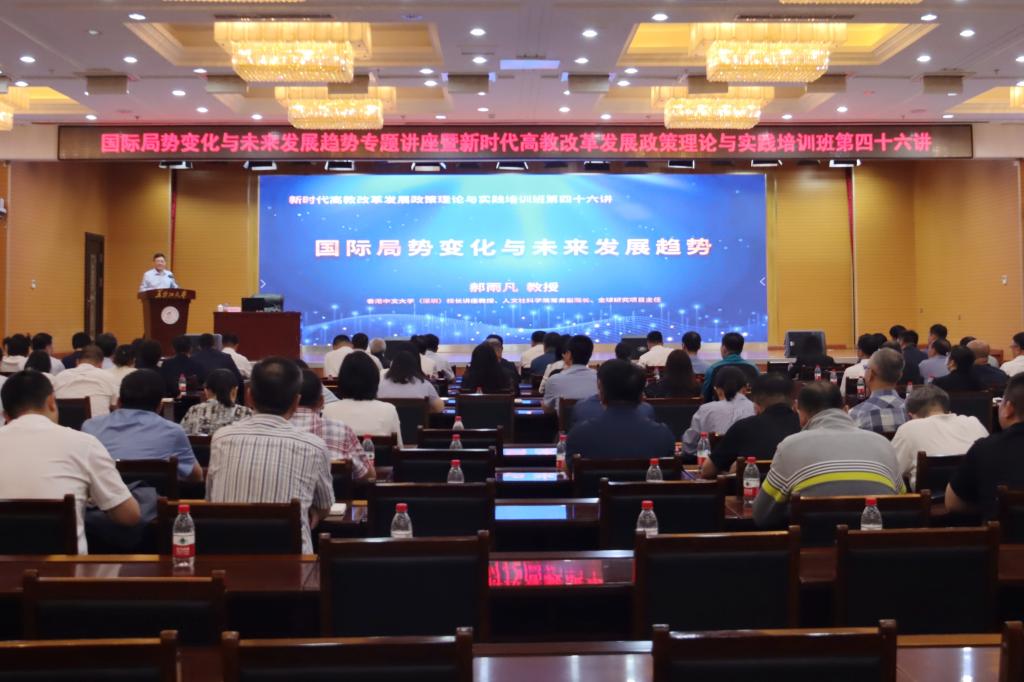 为推动主题教育走深走实,教育引导广大党员干部深刻感悟党的创新理论的实践能力。按照学校主题教育工作安排,6月20日下午,红足官网在主楼一楼报告厅举办国际局势变化与未来发展趋势暨新时代高教改革发展政策理论与实践培训班第四十六讲。香港中文大学(深圳)校长讲座教授、人文社科学院常务副院长郝雨凡担任本次专题讲座的主讲人。副校长李卓主持活动。