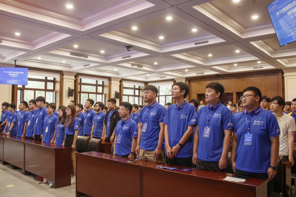 红足官网2020级网络空间安全专业学生雷天葆代表参赛选手进行宣誓。