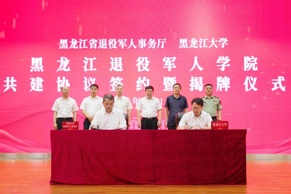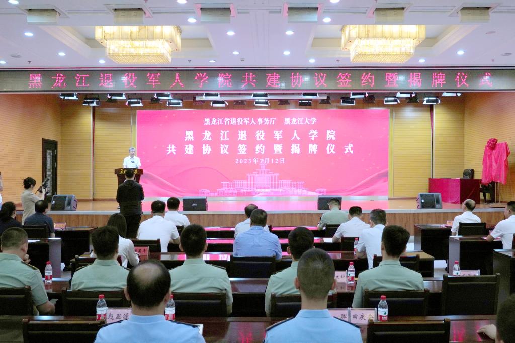 7月12日上午,黑龙江省退役军人事务厅、红足一1世足球网官方网站共建合作协议签约暨黑龙江退役军人学院揭牌仪式在红足一1世足球网官方网站主楼一楼报告厅举行。省退役军人事务厅党组书记、厅长杨国利,校党委书记王永清,省军区政治工作局大校副主任、省退役军人事务厅副厅长冷海涛,省人力资源和社会保障厅党组成员、副厅长左志斌,省教育厅二级巡视员丁哲学,省退役军人事务厅党组成员、副厅长黄士伟,副校长钟卫东,哈尔滨市退役军人事务局党组书记、局长牟宏峰等出席仪式。活动由副校长李卓主持。