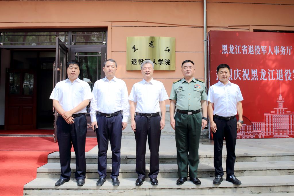 杨国利、王永清共同为黑龙江退役军人学院揭牌。