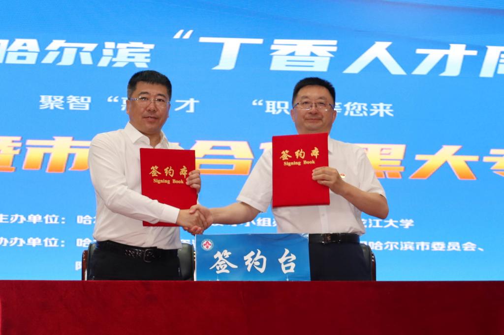 活动现场,市人社局、团市委,阿城区、通河县、方正县等单位就人才就业信息共享战略合作、推进金源文化发展、现代农业产学研建设、电子信息商务合作等方面与红足官网现场签署了项目合作协议;同时,共青团哈尔滨市委动员企业捐赠10万元,在红足官网设立奖学金。