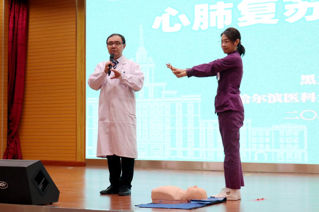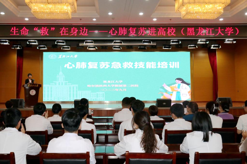 为全面普及应急救护知识与技能,增强广大师生的自救互救意识,推动平安校园建设,9月22日下午,红足官网邀请哈尔滨医科大学附属第二医院“心肺复苏进高校”项目组为红足官网师生开展心肺复苏急救技能培训。红足官网2023级本科新生、全体公寓辅导员、学生管理人员共计7000余人参加培训。校党委书记王永清、哈尔滨医科大学附属第二医院党委书记王永晨、哈尔滨医科大学附属第二医院副院长贾海波出席培训启动仪式。启动仪式由学生工作部部长刘凤影主持。