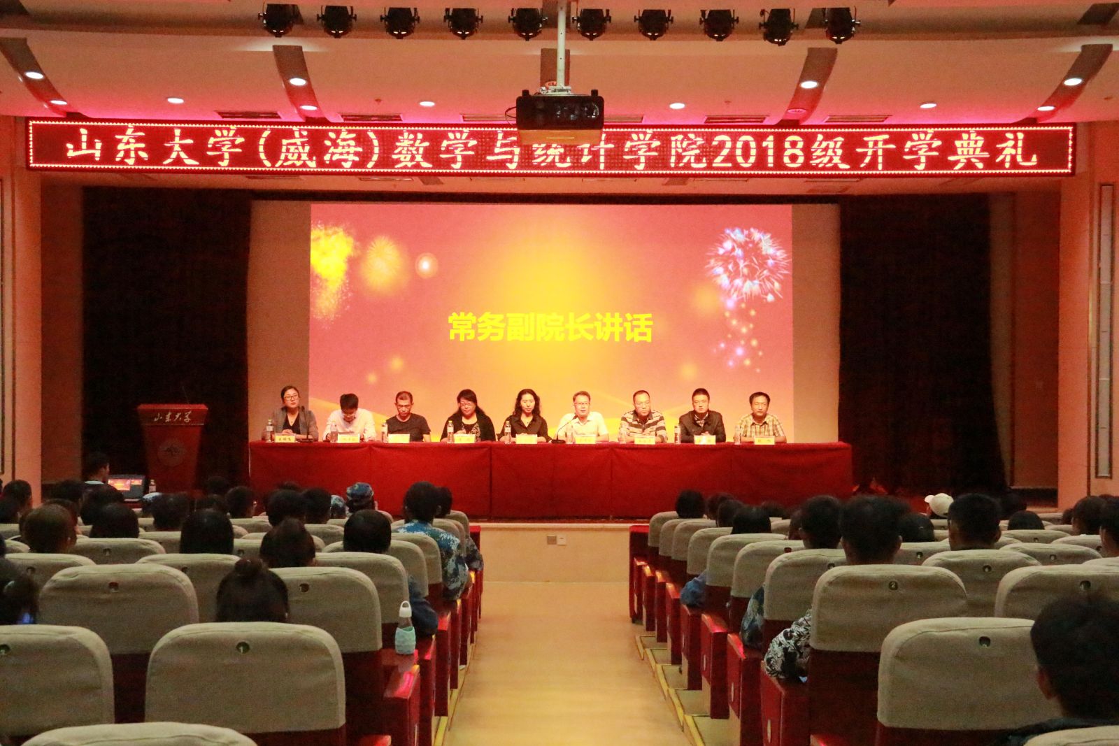 开学典礼在庄严的国歌声中拉开序幕。綦建刚代表学院致辞,他对全体新生表示热烈欢迎和祝贺,并为大家介绍了学校和学院的基本情况,强调了数学作为基础学科的重要性与发展前景。綦建刚从“何为大学”的问题出发,结合自身的感悟和体会,对全体同学提出希望和要求,叮嘱同学们做好规划,充实而有意义地过好大学生活。教师代表杨丰凯在讲话中,特别指出数学学科的专业优势,并结合自身的学习经历,分享了学习数学的心得体会。随后,老生代表发言,表达了对新生的祝福,并向新生介绍了自己在大学生活中的一些经验、感悟。新生代表表达了对近日忙碌于迎新工作的领导、老师以及学长学姐们的感激与祝福,并表示2018级新同学们将会不负所托,努力奋斗。最终,全体起立,高唱山东大学校歌,大会也在歌声和一片热烈的掌声中落下帷幕。