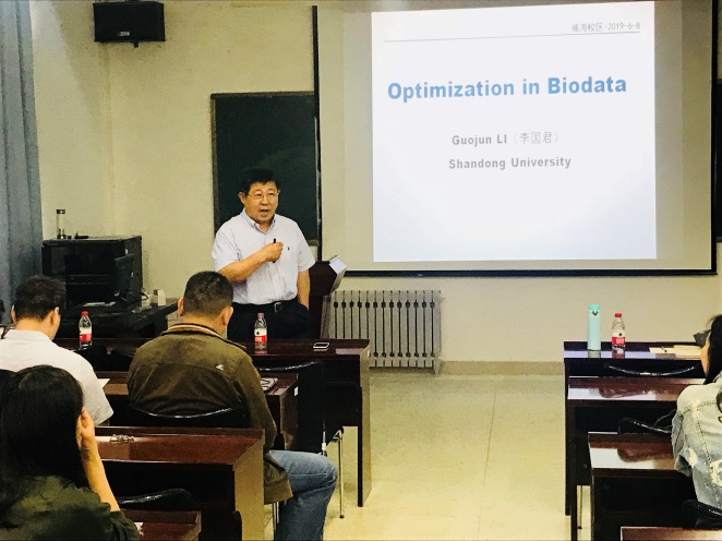 同时,浙江工业大学邸继征教授作了题为“修波级数与锥上的修波”的报告,介绍了修波框架理论,修波级数理论,与多元离散傅里叶变换类似的离散修波,即锥上的修波。上海师范大学理学院王军教授作了题为“On the Erdős-Ko Theorem”的报告,深入浅出地讲解了在组合数学的代数和数论方法、字上的组合、偏序集上的组合等方面若干有影响的问题和猜想。上海师范大学郑小琪教授作了题为“基于DNA甲基化的肿瘤纯度估计和若干计算问题”的报告,介绍了基于DNA甲基化Infinium 450k芯片数据的肿瘤纯度估计方法InfiniumPurify,并利用估计出的肿瘤纯度,分别构建了校正纯度因素的差异甲基化分析和肿瘤样本聚类的两个统计学模型。山东大学李国君教授作了题为“生物数据分析中的组合最优化方法”的报告,介绍了生命科学领域中几个具体的重大科学问题、组合最优化在生物大数据挖掘领域中的理论和应用以及课题组在这些领域中的最新进展。