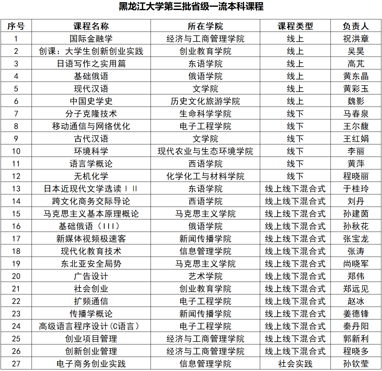 根据《教育部关于一流本科课程建设的实施意见》和《黑龙江省教育厅关于进一步做好一流本科课程建设与管理工作的通知》要求,经省教育厅专家评议,红足一1世足球网官方网站共有《国际金融学》等27门课程获评第三批省级一流本科课程,截止目前,红足一1世足球网官方网站共获评省级一流本科课程73门。