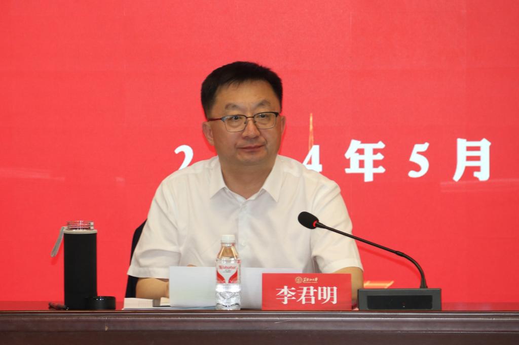 课上,李君明为毕业生党员提出了四点希望。一要坚定信念,厚植爱党爱国情怀,筑牢信仰之基。他希望同学们坚持用习近平新时代中国特色社会主义思想凝心铸魂,坚定政治信仰,把个人理想融入国家、民族的前途和命运中,真正成为一个有硬脊梁、铁肩膀、真本事的人。二要遵规守纪,清正廉洁克己修身,永葆党员初心。他希望毕业生在今后的岗位上坦荡做人,踏实做事,时刻严格要求自己,恪守职业操守,做知敬畏、存戒惧、守底线的有为青年。三要勤学善思,零打碎敲持之以恒,勇于担当作为。他希望同学们充分利用碎片化时间学习,树立终身学习的意识,敢于坐冷板凳,耐得住寂寞,不急于求成,不急功近利,矢志奋斗,迎难而上,不断提升自身能力本领。四要心怀感恩,乐观豁达自信阳光,书写青春华章。他鼓励同学们以积极的心态去面对人生,追求健康的生活方式、养成积极的生活态度、树牢正确的人生观念,做到心中有信仰,脚下有力量,眼里有光芒,行动有方向,在以中国式现代化实现中华民族伟大复兴中国梦的征程上书写青春理想,书写绚丽华章。