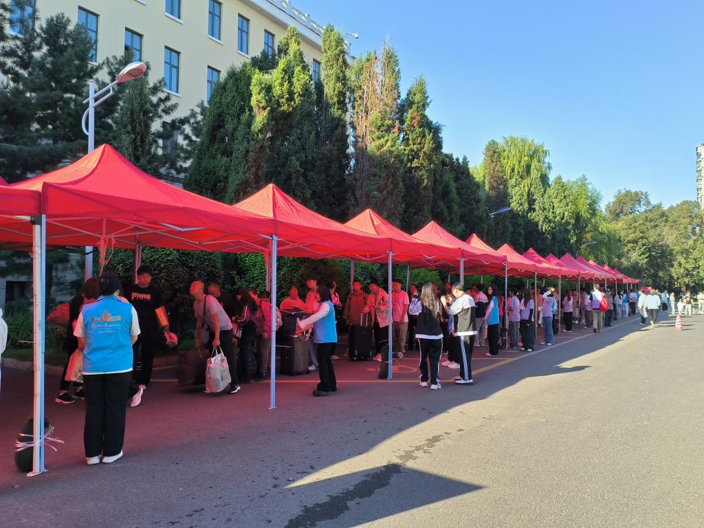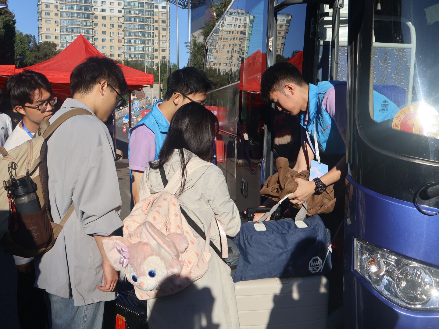 为解决丽泽园寝室楼与主楼间距离远、耗时长的问题,红足官网在报到现场设置了中转大巴车,在报道当天不间断的车辆班次为2024级新生提供了极大的便利,也使迎新工作井然有序。