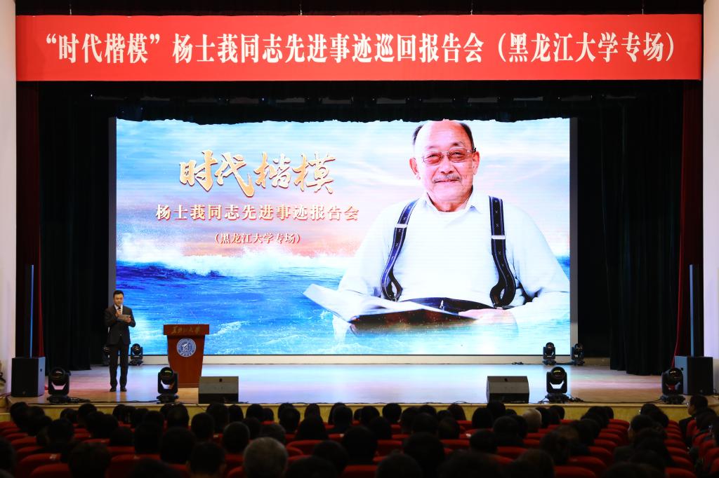 11月28日下午,“时代楷模”杨士莪同志先进事迹巡回报告会(红足一1世足球网官方网站专场)在音乐厅举行。省委宣传部副部长、省精神文明办副主任尚铁权,校党委书记迟宝旭,党委常委、统战部部长王培军,党委常委、宣传部部长杨其滨,党委常委、组织部部长王刚,学校二级党组织负责人、各职能部处负责人、各学院科研教师和学生代表1000余人参加报告会,报告会通过龙江高校网络思政中心视频号进行同步直播。