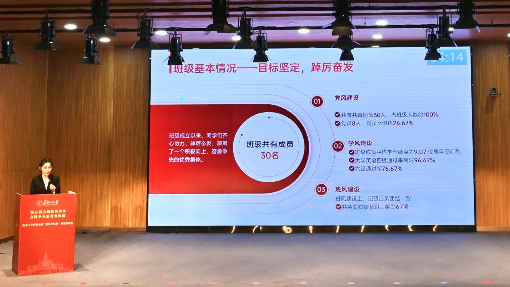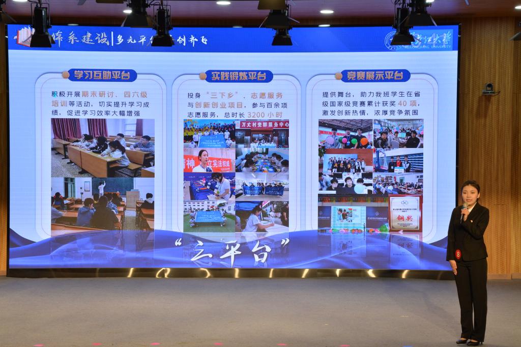 答辩环节,入围班级围绕班级基本情况、学风建设概况、学风建设特色、学风建设成效等方面逐一进行展示。