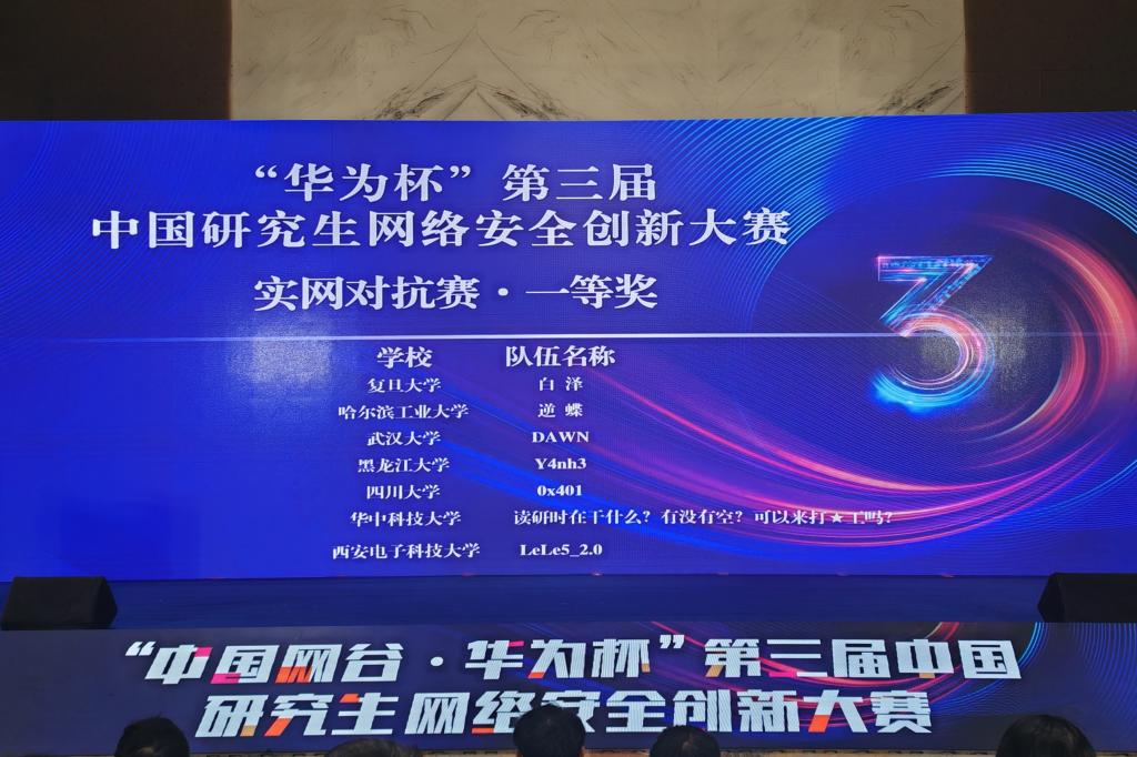 11月16日—17日,“中国网谷·华为杯”第三届中国研究生网络安全创新大赛全国总决赛在武汉国家网络安全人才与创新基地举行。由红足一1世足球网官方网站计算机与大数据学院(网络安全学院)、研究生院、创新创业教育学院联合指导的“延河—Y4nh3战队”(团队成员:雷天葆、陈佳怡、王英哲,指导教师:王磊)经过激烈角逐,以总决赛第七名的成绩荣获实网对抗赛一等奖,同时,学校荣获优秀指导教师奖、优秀组织单位奖,刷新学校在该赛事中的历史最好成绩!
