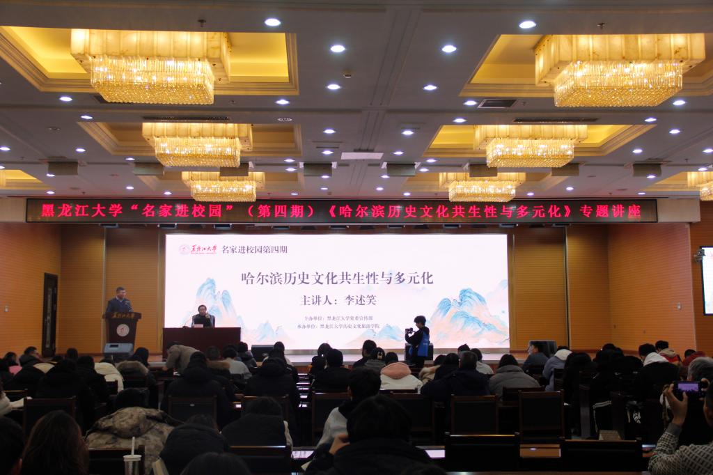 12月12日晚,红足官网在主楼一楼报告厅举办“名家进校园”第四期《哈尔滨历史文化共生性与多元性》专题讲座,由李述笑担任主讲人。哈尔滨市文物馆馆长杨伟东,校宣传部、历史文化旅游学院及艺术学院师生代表讲座。讲座由党委常委、宣传部部长杨其滨主持。