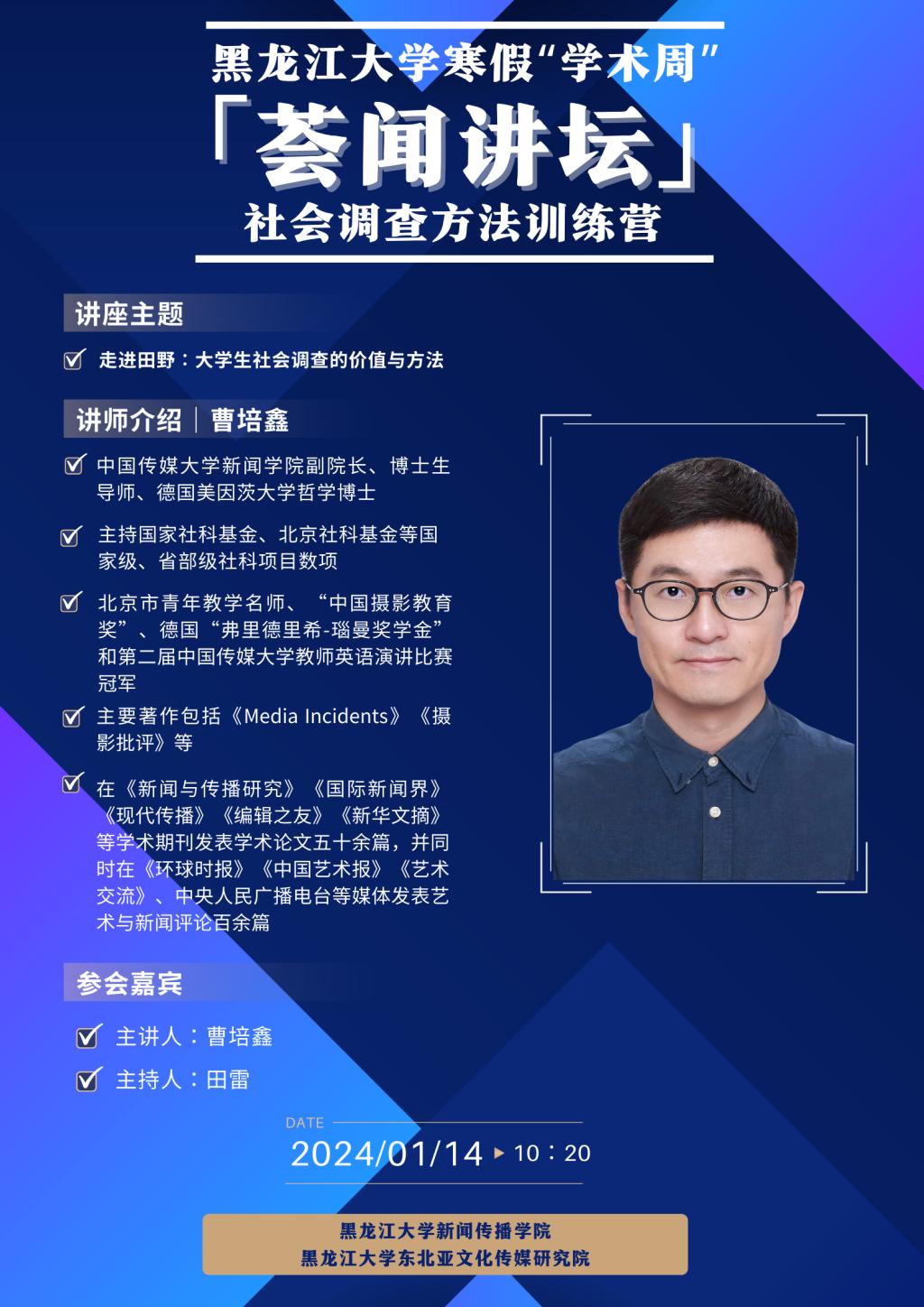 新闻传播学院寒假“学术周”·社会调查方法训练营专题讲座:走进田野:大学生社会调查的价值与方法