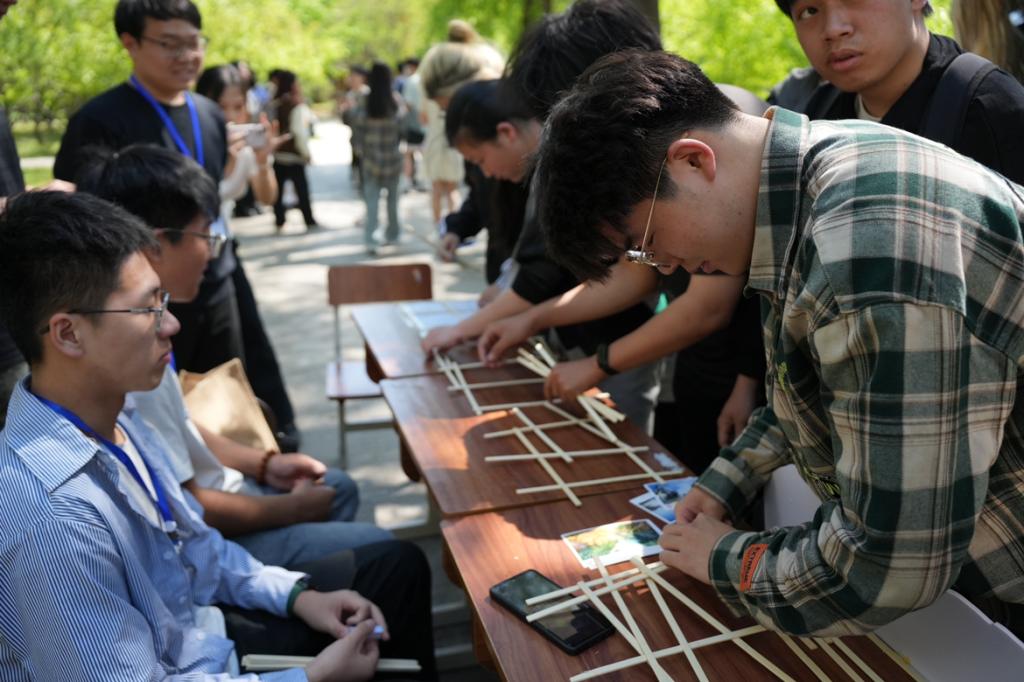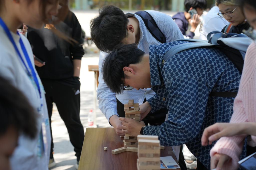 此外,活动现场还设置了富有创意的互动游戏。积木抽抽乐环节中,同学们享受着“釜底抽薪”的快乐。整个活动现场热闹非凡,同学们在轻松愉快的氛围中,不仅学习到了中国传统古建筑的知识,还提高了审美素养和动手能力。