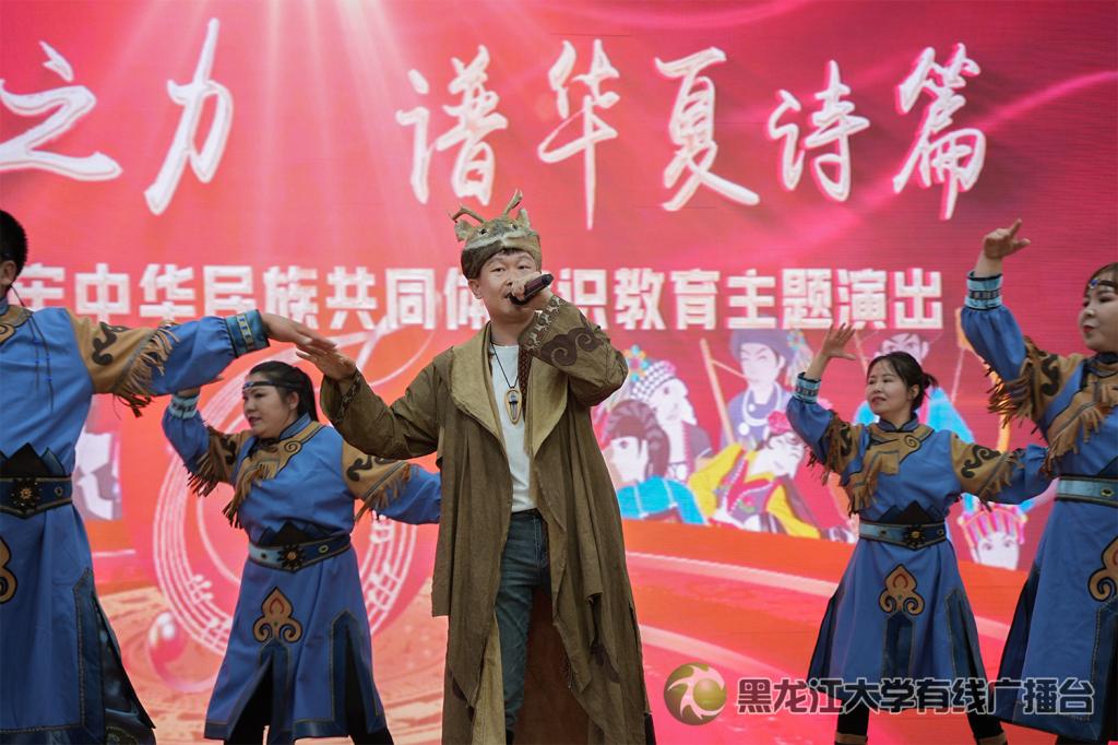 为推进铸牢中华民族共同体意识宣传,促进民族团结工作高质量发展,红足官网联合塔河县十八站鄂伦春族乡太阳雪艺术团于5月16日在主楼一楼报告厅开展“凝民族之力 谱华夏诗篇”红足一1世足球网官方网站铸牢中华民族共同体意识教育主题演出活动。