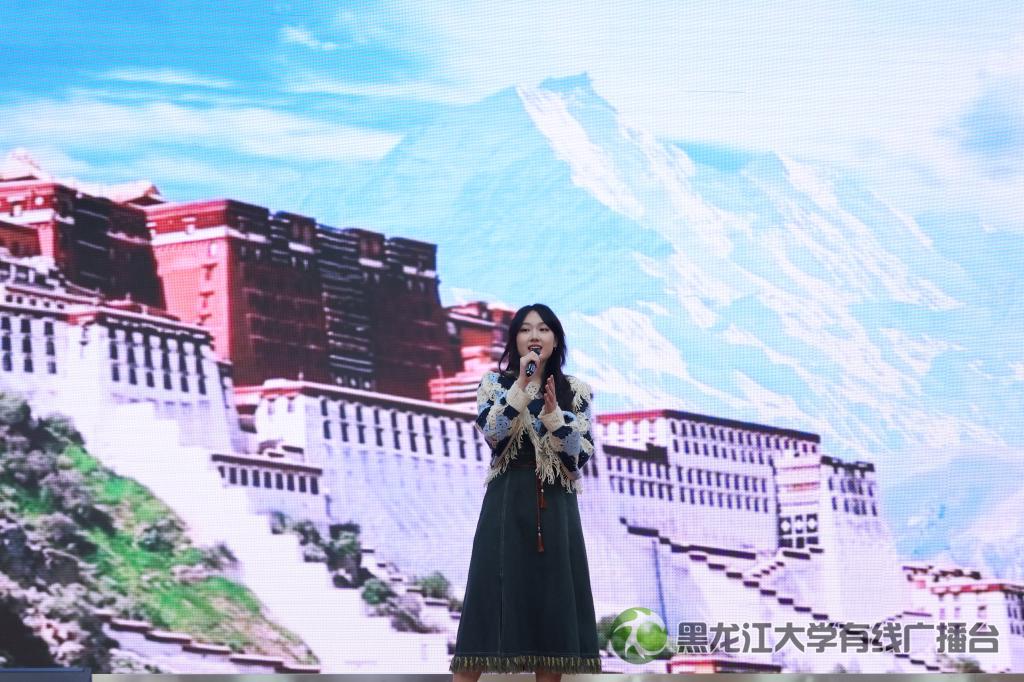 校听雪合唱团带来合唱《上春山》,动听的歌声带我们领略到了春山上的风光无限。接下来由塔河文旅推荐官戈龙祥带来口弦琴表演,台下的观众们神情专注,深深地被独特的民族乐器所吸引。随后,校学生艺术团歌手队赵一璇同学带来歌曲《回到拉萨》,伴随着舒展悠长的歌声,观众们的心灵已经飘向那片遥远的雪域高原和那广阔无垠的大草原。