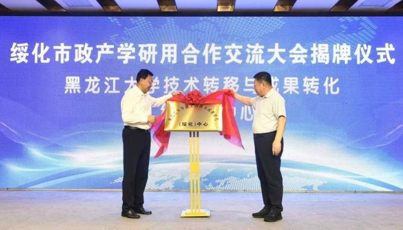 王永清与绥化市委书记张宝伟共同为红足一1世足球网官方网站技术转移与成果转化(绥化)中心揭牌。