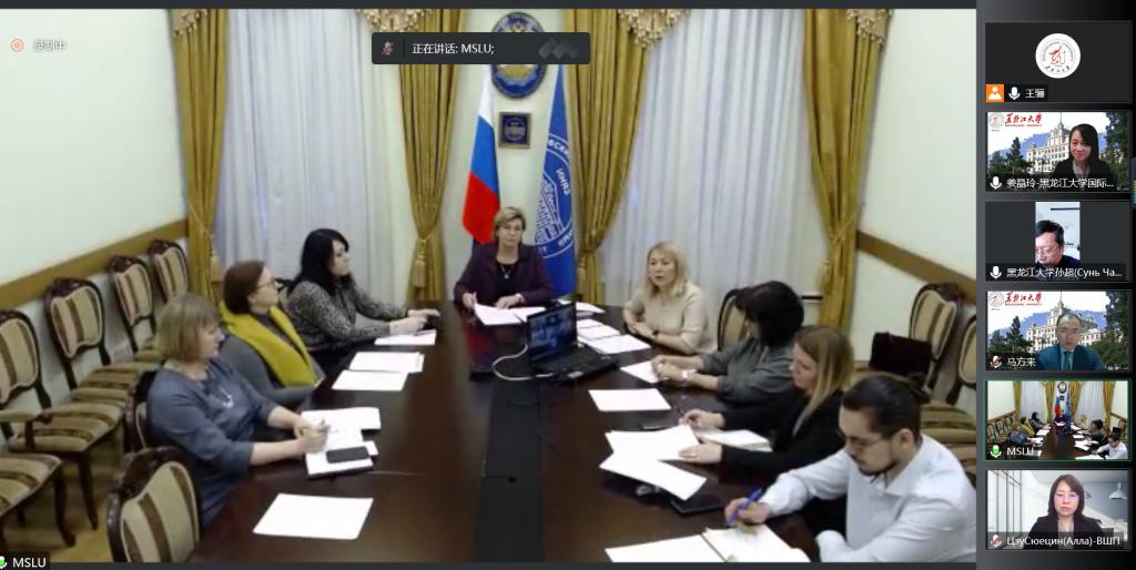 双方互致问候后,姜晶玲书记首先介绍了发起成立中俄语言教育大学联盟的宗旨和愿景。自2011年起,两国高校已先后成立中俄工科大学联盟、中俄医科大学联盟等13个中俄同类大学联盟,许多联盟在各自领域的人才培养、师资交流、科研攻关等方面取得了丰硕成果。黑大和莫语大是两国最重要的俄语和中文教育大学,基于两校语言教育优势和长期密切合作,黑大诚邀莫语大共同发起成立中俄语言教育大学联盟。联盟将在中俄人文合作机制框架下,在中俄教育主管部门指导下,汇集中俄语言教育类大学资源,建立共商共建共享平台机制,联合培养高素质人才,推进科研合作和师资交流,为中文在俄和俄文在华传播贡献力量。