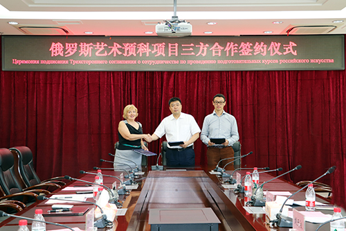 双方就各自的优势、需求,合作事项等进行交流。随后,双方签订了俄罗斯艺术预料项目三方合作协议,并互赠礼物。(摄影:安益民 牛芃生)