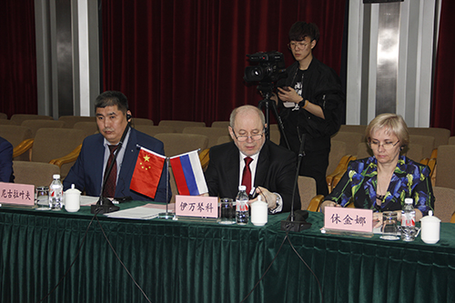 东北农业大学校长包军、太平洋国立大学校长伊万琴科、布拉戈维申斯克国立师范大学校长休金娜、内蒙古大学副校长额尔很巴雅尔、东北联邦大学自然-数学专业副校长尼古拉叶夫、长春大学科研副校长刘多、后贝加尔国立大学副校长西马托夫、黑河学院副校长张焕强依次从学校特色、取得成就、存在问题、发展建议等方面代表学校发言。