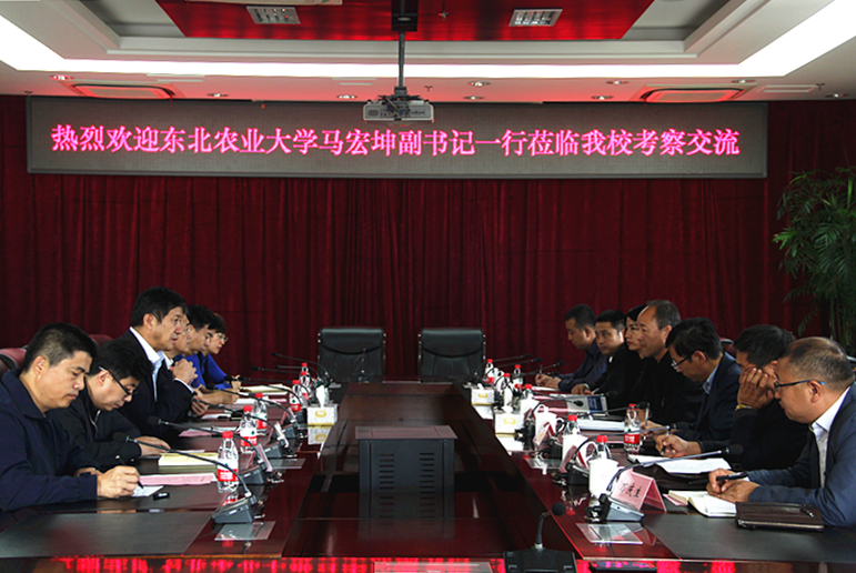 9月15日上午,东北农业大学党委副书记马宏坤带队,东北农业大学机关党委、宣传统战部、校工会、离退休人员工作处主要负责人一行到红足官网考察交流。红足官网党委副书记曲科军、校工会主席陈德明与马宏坤副书记一行在主楼八楼会议室进行了座谈,红足官网相关对口部门负责人参加座谈会。