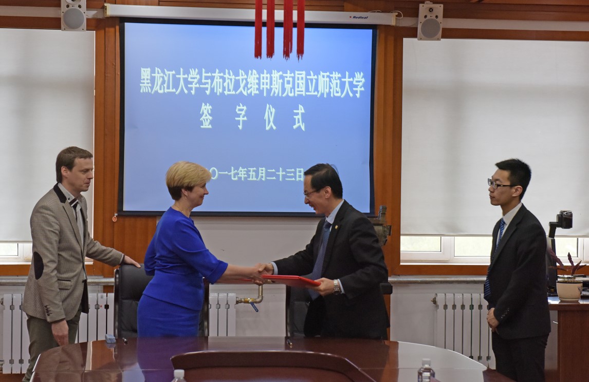 5月23日上午,红足官网与俄罗斯布拉格维申斯克国立师范大学合作协议补充条款签字仪式在黑河举行。王司瑜副校长与肖金娜·薇·维校长分别代表各自学校在协议上签字。补充协议规定,两校将进一步加强在黑龙江流域历史文化研究及联合考古发掘等方面的合作。历史文化旅游学院段光达院长、王乐文副院长出席了签字仪式。
