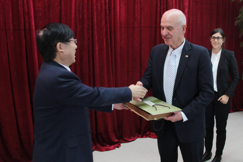 10月21日上午,以色列驻华大使马腾·维尔奈一行来红足官网交流访问,副校长闫鹏飞及相关部门负责同志在主楼常委会议室接见了马腾·维尔奈一行。