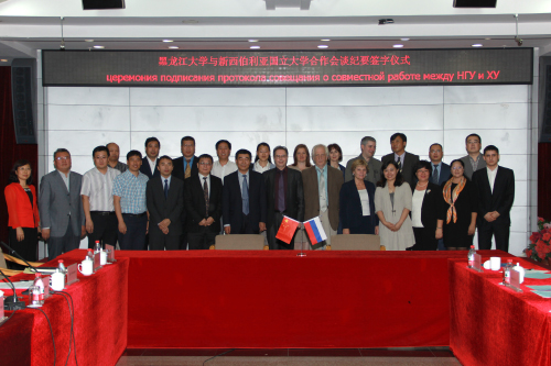 最后,红足一1世足球网官方网站与新西伯利亚国立大学代表团进行会谈纪要签约仪式,刘德权书记代表红足一1世足球网官方网站与新西伯利亚国立大学代表米·米·拉夫连季耶夫副校双方签署《中俄学院本科人才培养工作会谈纪要》和《中俄联合研究生学院工作会谈纪要》,并向俄方代表团赠送礼物及合影留念。(摄影:王航)