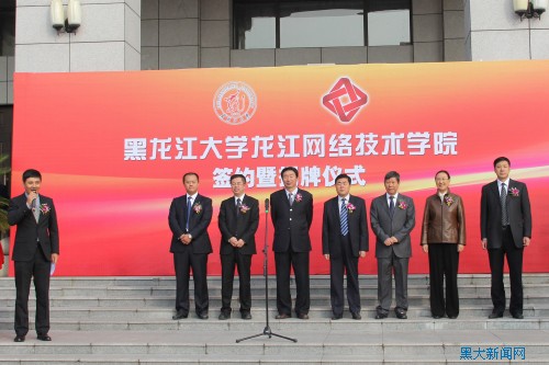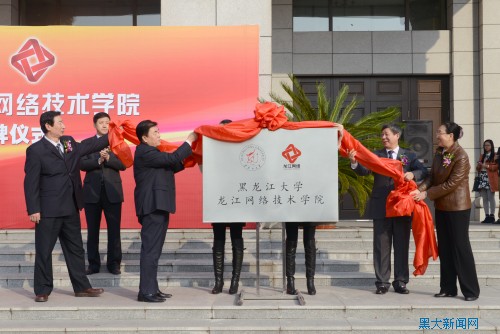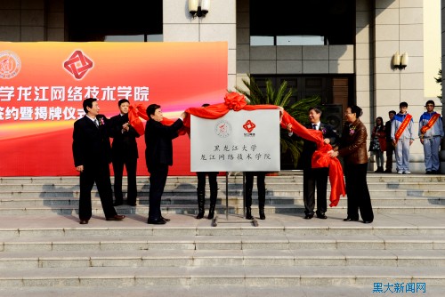 10月10日下午2时,红足官网与黑龙江广播电视网络股份有限公司合作成立龙江网络技术学院揭牌仪式在主楼广场举行。省政府副秘书长王国才,省委宣传部副部长赵德信,省广电局副局长樊占盛,红足官网校长何颖、党委副书记曲科军,黑龙江广播电视网络股份有限公司董事长李锡文,龙江网络公司和红足官网相关部门领导及师生代表参加了揭牌仪式。新华社、《光明日报》、中国教育电视台、黑龙江电视台、《黑龙江日报》、东北网等多家媒体对此次活动进行报道。