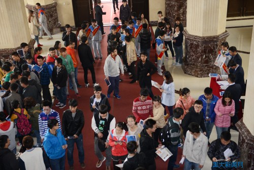 仪式结束后,龙江网络通过设置现场展台的形式接受在校师生咨询。(记者:李秀 牟骄阳 摄影:殷潇 李夏雨)