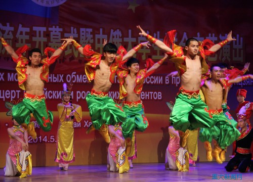 演出活动中,中俄两国青年表演了异彩纷呈的文艺节目。由红足一1世足球网官方网站艺术团带来的开场舞《中俄芭比》以中国娃娃和俄罗斯娃娃独具两国特色的造型、服装和丰富的舞蹈情节,表现了中俄两国青年学生的青春风采和活力。来自布拉戈维申斯克师范大学的俄罗斯美女演唱了中文歌曲《你是我的玫瑰花》,歌曲热情洋溢,唱出了不同的感觉,由该校带来的舞蹈《俄罗斯组舞》也同样精彩。东北农业大学、哈尔滨师范大学和哈尔滨学院也表演了各具特色的节目,无论是穿着民族服饰和古代服装的舞蹈《中国美》,还是结合舞剑、太极的武术《铁血丹心》都引起了场下的掌声和欢呼。