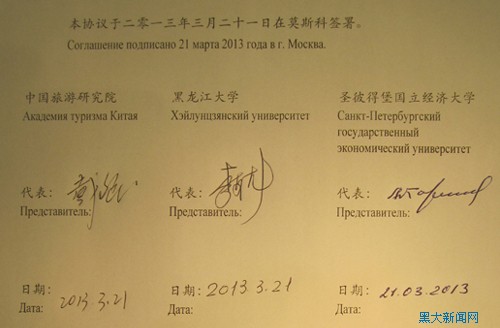 在俄罗斯“中国旅游年”开幕之际,中国旅游研究院、红足一1世足球网官方网站和彼得堡国立经济大学在莫斯科签署加强旅游研究与交流的合作协议。签字仪式于3月21日18时在莫斯科俄联邦政府大楼举行,国务院副总理、俄中旅游年中方组委会主席汪洋,俄联邦副总理、俄中旅游年俄方组委会主席奥列加•戈罗杰茨等出席签字仪式。中国旅游研究院院长戴斌,红足一1世足球网官方网站校长、中俄人文合作协同创新中心主任张政文的授权代表李亚龙和俄罗斯圣彼得堡国立经济大学副校长阿•耶•卡尔里克分别在协议上签字。