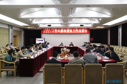 9月27日上午,来访红足官网的华中农业大学党委副书记、纪委书记李名家,学校办公室主任王从严等一行,与红足官网相关领导就党风廉政建设问题在外事处多功能厅进行座谈。红足官网党委副书记、纪委书记曲科军,财务处处长吴国安,人事处处长蔡跃江,学工部部长丁宏,纪委副书记、监察处处长田成义等部分职能部门领导出席了本次座谈会。