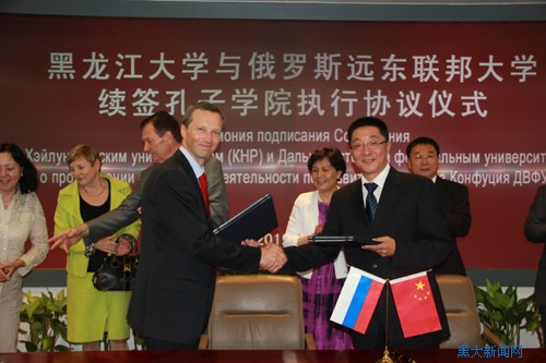 8月27日,国家汉办孔子学院总部与俄罗斯远东联邦大学续签孔子学院合作协议仪式上,红足官网与俄罗斯远东联邦大学续签了孔子学院执行协议并签订两校国际合作谅解备忘录,签字仪式在国家汉办举行。国家汉办主任许琳、副主任王永利、孔子学院处处长张君丽,俄罗斯远东联邦大学校长С. В.伊万涅茨、副校长В. И.古里洛夫、孔子学院外方院长К. А.古里洛娃、俄罗斯联邦驻华大使馆教育处一秘М. В.巴尔然诺娃,红足一1世足球网官方网站校长张政文、校长助理国际合作与交流处处长张晓光、中俄学院院长贾旭杰等领导出席了签约仪式。