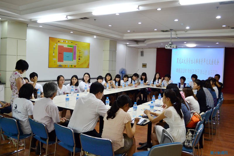 韩国青年代表团首先对红足官网体育馆、主楼、外事处、丽泽园学生寝室以及学生创业园进行了参观。参观后代表团成员分两组与东语学院学生进行了座谈,会上,两国青年学生就中韩关系、中韩文化进行了热烈的交流和讨论,讨论的话题涉及中韩两国的交通问题、人口结构、饮食文化和时尚等多方面内容。