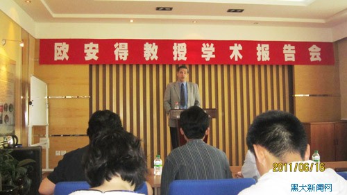 欧安得教授系俄罗斯科学院远东研究所副所长、经济学博士,此次报告会的题目为“俄罗斯远东地区与中国东北地区合作前景分析”。欧教授认为,俄罗斯远东地区资料丰富,但经济发展落后于俄欧洲部分,国家投资不足、基础设施尤其是交通设施薄弱、劳动力不足等是地区经济社会发展的制约因素。从国际合作角度看,经济快速发展的亚太经济圈为远东地区发展提供了新机遇,将于2012年在符拉迪沃斯托克举行的亚太经合会议无疑会为远东地区经济发展注入新动力。欧教授认为,当前两地合作的主要方向有:以石油、天然气和电力合作为主的能源合作;交通和物流领域合作等。在随后的互动交流中,欧安得教授还就俄东部地区与中国东北地区合作纲要落实情况、中俄铁路桥建设进展情况、中俄关系未来走向、中国在远东地区移民等问题与中国同行进行了交流。