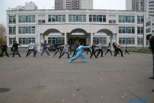 俄罗斯学生在操场学习中国功夫