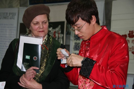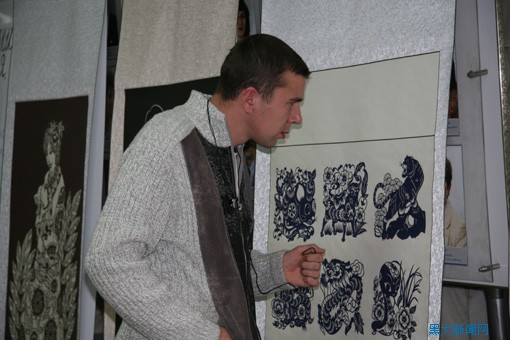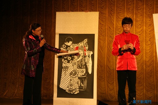 贾旭杰教授在演出中介绍中国的剪纸艺术