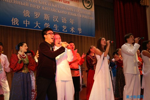 俄中大学生艺术节上中俄学生共唱《真心英雄》