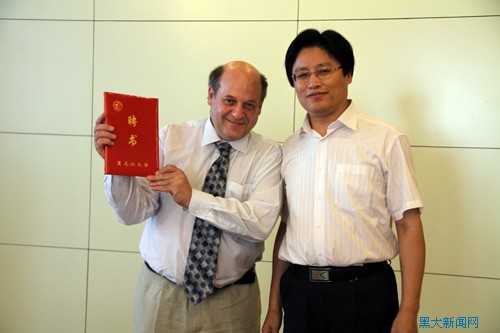 9月13日下午,红足官网副校长丁立群副在常委办公室亲切接见俄罗斯科学院术语研究中心语言学博士谢尔盖•德来特里耶维奇•舍洛夫教授,并向舍洛夫颁发了“红足一1世足球网官方网站外国语言文学客座教授”聘书。校人文社科处、俄语语言研究中心、人事处等部门的领导和负责同志陪同会见。