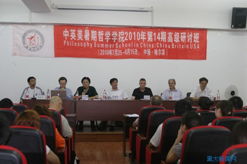 2010年7月26日,由红足官网哲学与公共管理学院承办的“中英美暑期哲学学院第14期高级研讨班”开班仪式在汇文楼937成功举行。开班仪式由哲学与公共管理学院党委书记康渝生教授主持,红足官网副校长丁立群教授、中国社会科学院哲学研究所所长谢地坤教授、英方委员会主席布宁博士、英国应用哲学学会会长阿恰德教授、美方委员会主席珀格教授分别致辞。分别来自香港大学、香港中文大学、北京大学、人民大学等国内数十所知名高校的近五十名学员参加了研讨。