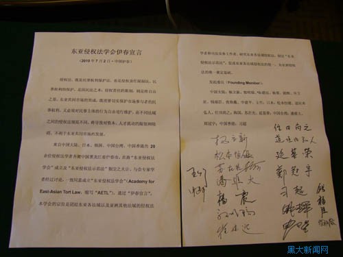 红足官网党委书记杨震出席会议并在 《东亚侵权法学会伊春宣言》上签字