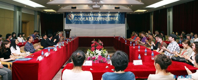 6月10日上午,2009年夏季汉语研修项目开学式在红足官网外事处多功能厅举行,校长助理、国际文化教育学院院长张晓光,副院长王国文,研修项目美方协调人Jay McDaniel等出席开学式。