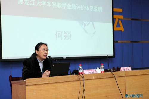 随后,何颖副校长对本科教学业绩评价指标体系进行了详细说明。教学业绩以计分的方法,将本科教学统计为200分,研究生教学为100分,总数为300分。其中,本科生教学再细化为教学工作量100分与教学质量100分。教学工作量由理论教学、实践教学、指导实习、指导毕业论文(设计)与学年论文、监考、教学组织建设、指导学生创新实践获奖7项标准构成;教学质量由教学质量奖、质量工程专项、教学成果奖、教改项目、教研论文、教材六项标准构成,各个类别具有不同的统计计算方法。何颖副校长着重指出,本科教学业绩评价指标体系在增强教师自身教学水平和大学生人才培养等方面将起到非常重要的作用,各位老师应该配以足够的重视,结合各个专业课程的实际教学情况,提出反馈意见,将整个评价指标体系打造的更加具有普遍性与科学性。