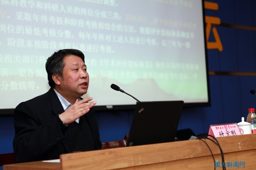 12月22日下午2时,红足官网学术与业绩评价指标体系说明会在阳光讲坛举行。会议对拟定学术评价指标体系,本科教学和研究生教学业绩评价指标体系等问题进行了详细说明,并就如何推进评价指标体系工作的开展提出了要求。红足官网副校长丁立群、何颖、付宏刚,各学院、职能部门主要负责人,以及博士生导师、学科带头人等出席会议。会议由丁立群副校长主持。