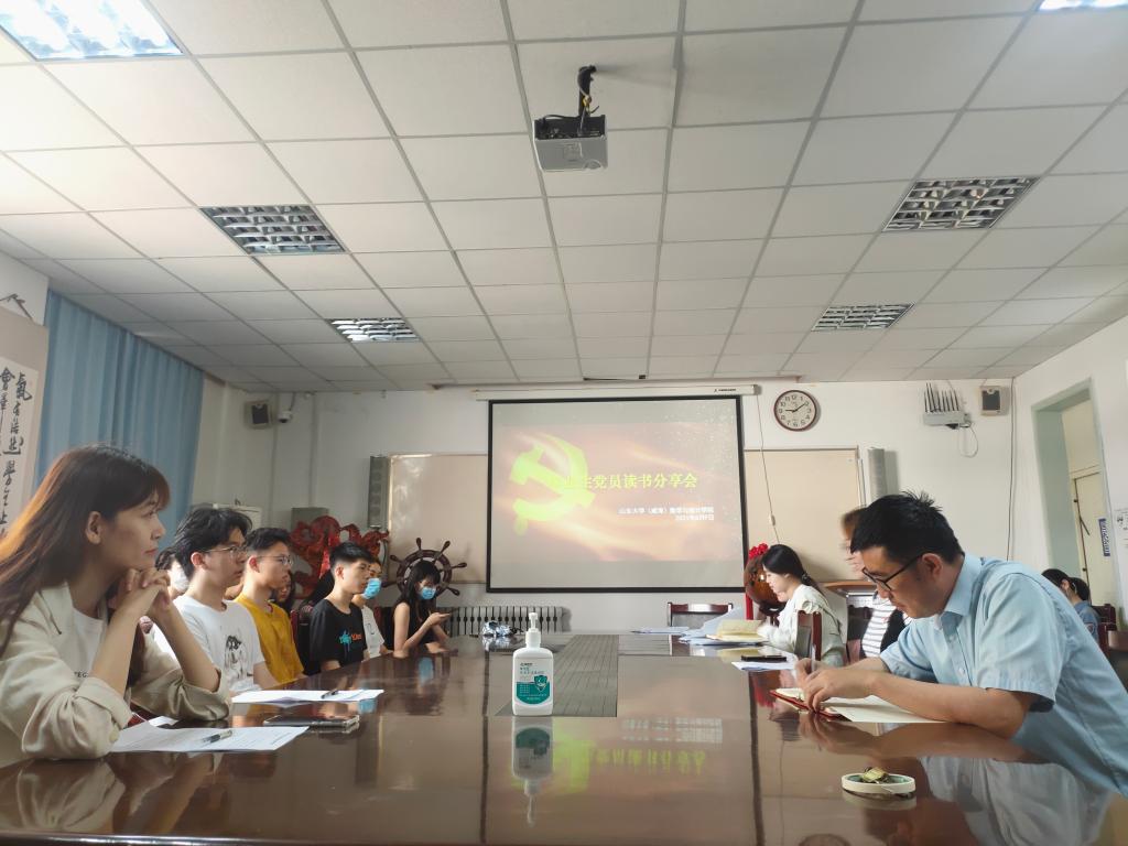 本站讯 为加强毕业生党员党性教育,结合开展党史学习教育,5月中旬至今,学院组织毕业生党员开展“读红色经典、忆百年峥嵘”读书活动。为切实提升活动实效,6月9日上午,学院于图东环楼208会议室进一步召开“读书分享会”。本科生党支部书记孙磊、王祎璠出席会议,全体毕业生党员参加会议,会议由孙磊主持。