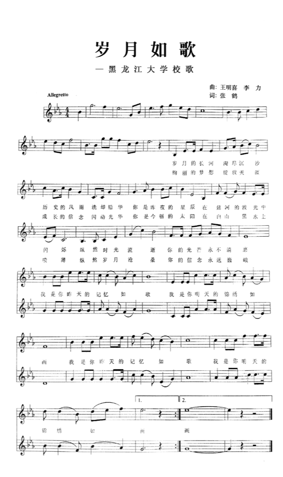 兴安龙江,山高水长,巍巍上庠,气象泱泱。作育英才,振翮远翔。弦歌不辍,刮垢磨光。格致穷理,唯实是尚。人文精神,以张以扬。